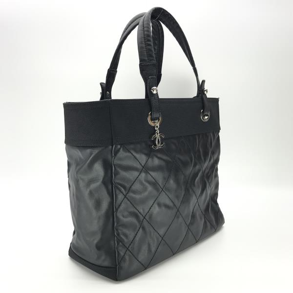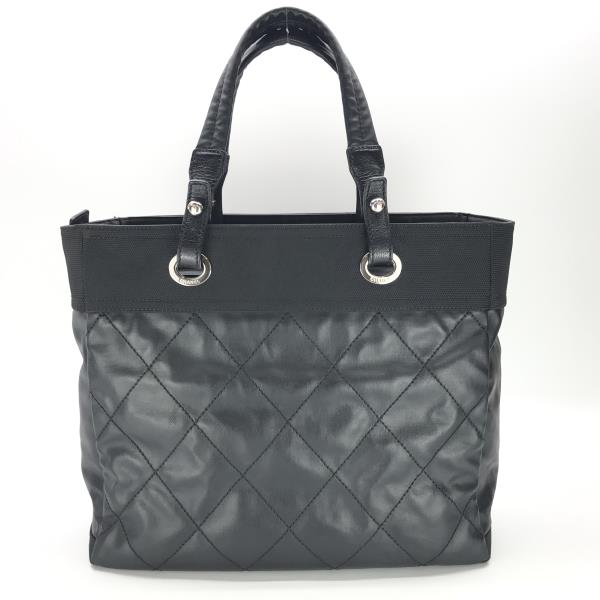 CHANEL シャネル A34209 パリビアリッツ トートMM キャンバス レザー コーティング 黒 ココマーク ワンショルダー 手提げ 管理YK20001266